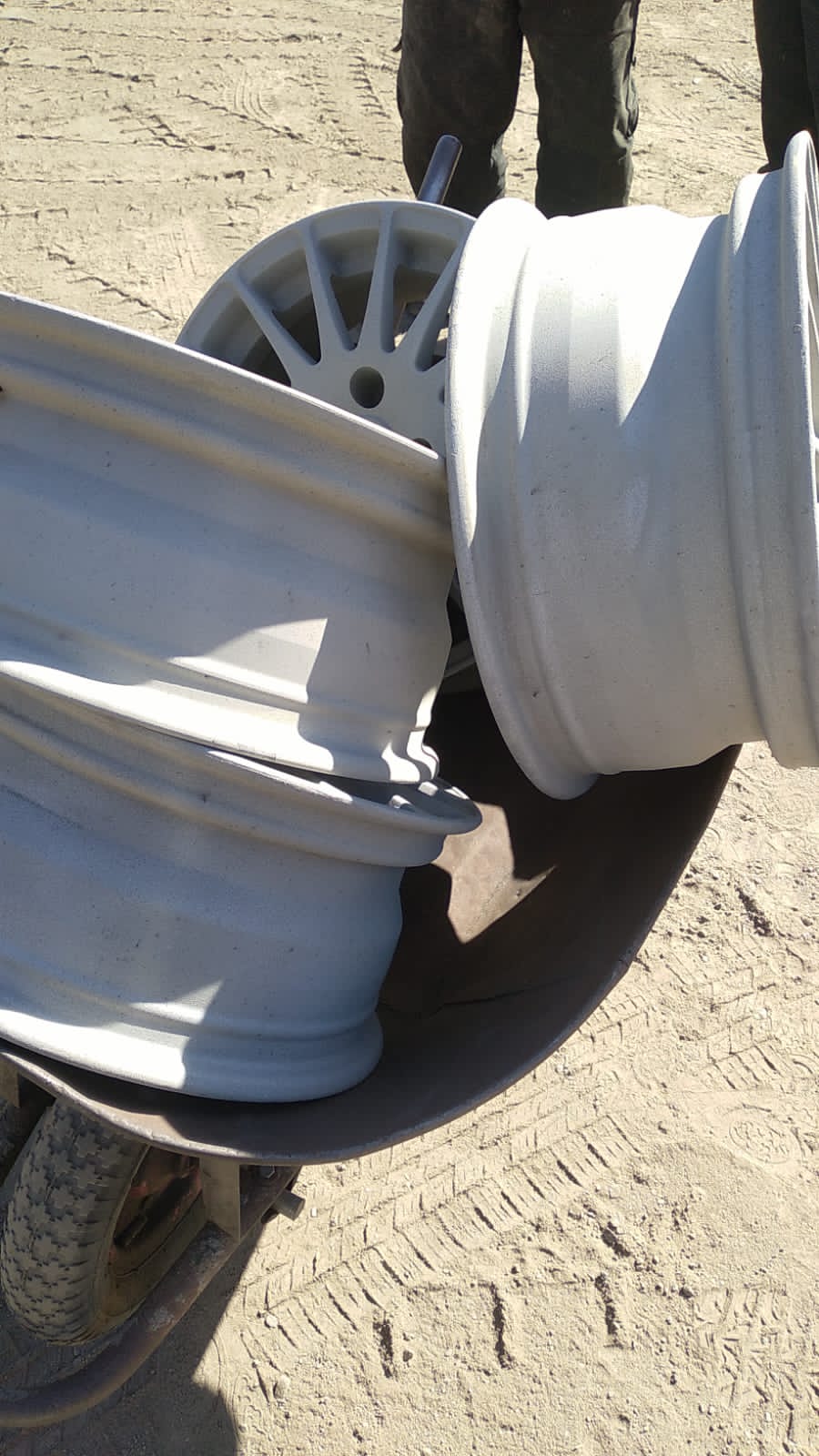Piezas de vehículos tales como puertas, portalón, capot, conjunto de llantas, tapa de motor, chasis de motos y marcos de bicicletas.